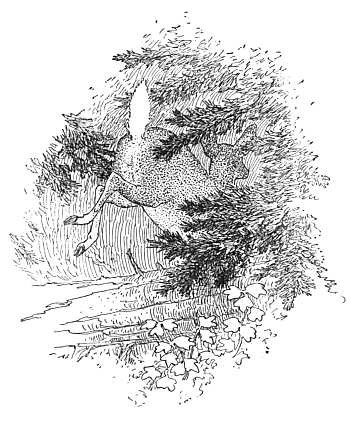 Watching them thus at their play, the meaning of a curious bit of deer anatomy became clear. A deer's shoulder is not attached to the skeleton at all; it lies loosely inside the skin, with only a bit of delicate elastic tissue joining it to the muscles of the body. When a deer was headed suddenly and braced himself in his tracks, the body would lunge forward till the fore legs seemed hung almost in the middle of his belly. Again, when he kicked up his heels, they would seem to be supporting his neck, far forward of where they properly belonged. This free action of the shoulder is what gives the wonderful flexibility and grace to a deer's movements, just as it takes and softens all the shock of falling in his high-jumping run among the rocks and over the endless windfalls of the wilderness.