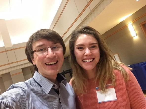 На конференцию пришел, что удивительно для меня, минута в минуту к началу. Уже несколько человек прошли в Бэлрум, где должно было состояться открытие. Обещанный завтрак не удивил своей простотой: фрукты и маффины, кофе и апельсиновый сок. Как раз около кофе я познакомился со студенткой Кэмерон Смит. На мой вопрос к ней о ее специальности, она ответила, что изучает «национальную безопасность». А когда я ей сказал, что являюсь участником программы Fulbright, она искренне обрадовалась, сказав, что тоже выиграла стипендию Fulbright, и поедет в следующем году учиться в Германию, в Берлин.