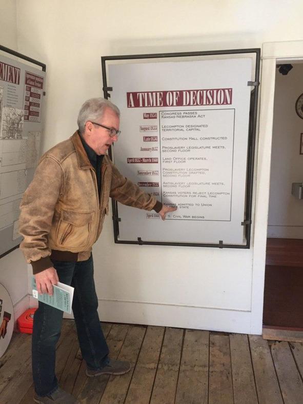 За разговорами мы выехали из Лоуренса, и по 24-му хайвэю через бескрайние поля Канзаса, ехали в один небольшой исторической городок — Ликомптон (ударение на второй слог). Мы припарковались у белого старинного (19-й век) деревянного двухэтажного здания. По виду было сразу ясно, что это музей. Вывеска указывала, что это «конституционный дом», и Лэн сказал, что никогда тут раньше не был.