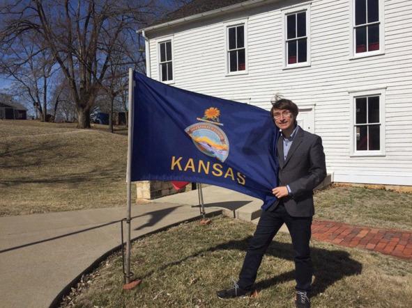 Осмотрели музей, я сделал фотографию около флагов США и Канзаса, и поехали дальше в сторону Топики.