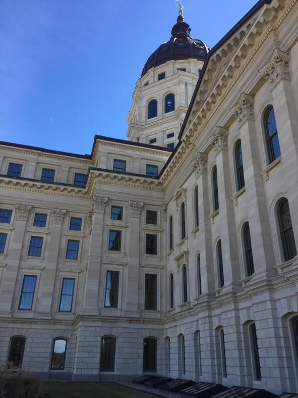 Я сделал круг вокруг капитолия — здание и вправду большое, тем более для степного Канзаса, где больших городов практически нет. Но вот уже когда подходил к теневому фасаду, решил сфотографировать часть колонны с прилегающими окнами, и невольно мне вспомнились наши бывшие здания обкомов, а ныне областные и краевые администрации и правительства. И такая вдруг тоска нахлынула оттого, насколько скучно здесь на самом деле работать, особенно летом в жару. И даже не здесь, а у нас — в наших администрациях. Интересно разве что губернаторам, но не обычным клеркам. А ведь такие синекуры разбросаны по всей стране, и не только нашей.