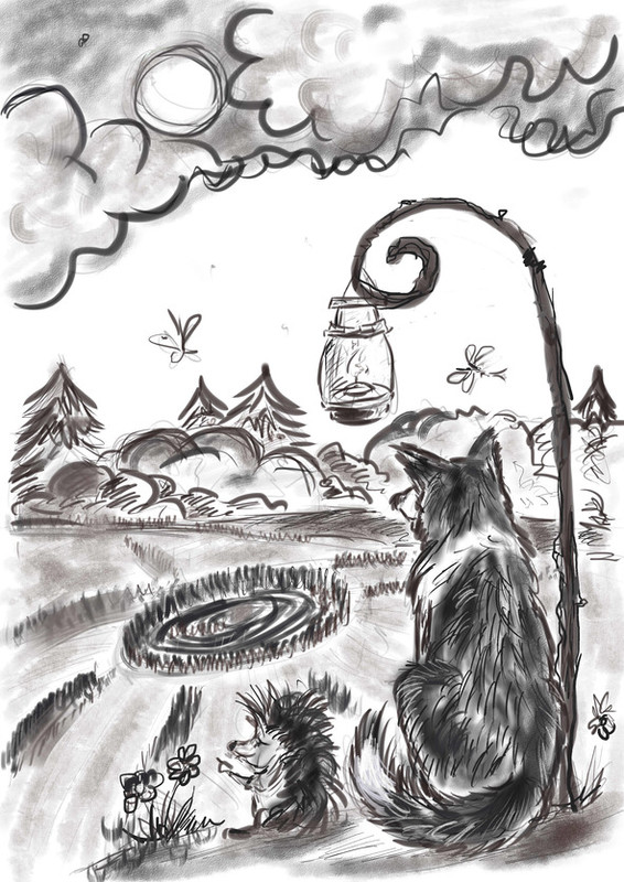 Дед Женя отошёл в сторонку. В темноте построение ежей было не очень хорошо видно, только немного поблёскивали их колючки в свете луны. Ёжики встали по двое и с важным пыхтением снова углубились в травяные заросли. Было слышно, как самый главный ё ж командует «левой-правой», уводя всех дальше в поле.
