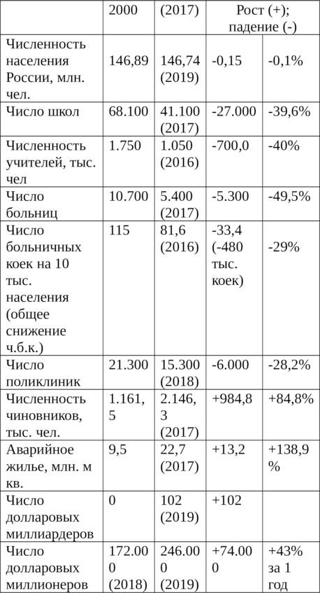 Разрушается экономика, разрушается и социальная сфера. Некоторые итоги за период с 2000 года приведены в Таблице. 1