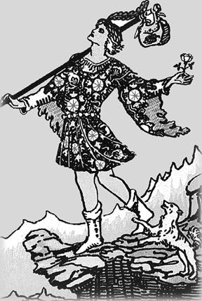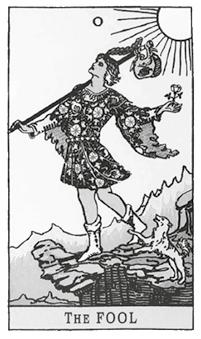 Странствующий Шут в одиночестве наслаждается золотыми лучами солнца. Солнце похоже на желток. Может, нулевая карта символизирует яйцо? Пора вылупиться, пора играть в прятки с убийцей. Пришел конец миру, который ему принадлежит. Выигрывает тот, кто первый найдет сестру.