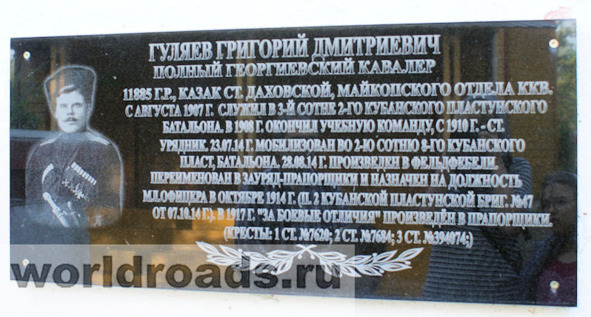 5920. ГЛАДКОВ Алексей Николаевич — 1 Оренбургский каз. Его Императорского Высочества Наследника Цесаревича полк, мл. урядник. Произведён в чин подхорунжего за боевые отличия, с 1915.04.25. Приказ по 10 кав. дивизии №149 от 1915.08.19. Прапорщик, хорунжий, сотник, есаул В 1 Оренбургском казачьем полку (1914—1917).В годы гражданской войны — есаул в белогвардейских частях, эмигрировал в Китай. Умер в г. Харбине. Награжден Георгиевским крестом 1 ст. №5920, за то, что в бою 3.09.1915 во время конной атаки у д. Рудники, подъесаулом Лукиным, по собственному почину бросился со своим взводом в атаку и после упорного сопротивления обратил его в бегство, причем много было порублено и взято в плен. (Награжден от Имени Государя Императора, Его Императорским Высочеством Великим Князем Георгием Михайловичем, за то, что, будучи старшим в полевом карауле, несколько раз отбивал атаки неприятеля силой около взвода). Георгиевский крест 4-й ст. №25126 получен «За конную атаку 8 августа 1914 г. уд. Маниловка» (Приказ по 10 кав. дивизии 1915.01.04), ГК 3-й ст.№24250 — «29 октября 1914 г. вызвавшись охотником ехать в разъезд, в течение 2-х суток был все время впереди, сообщал точные сведения начальнику разъезда, своим мужеством и храбростью ободрял товарищей, предупредил начальника разъезда об обходе вдвое сильного неприятельского разъезда в тыл д. Писаревка, в которой находился наш разъезд, спешился, своим огнем задержал противника, заставив его спешиться и открыть по нему огонь и тем самым дал возможность своему разъезду отойти и занять позицию» (Приказ 8 А. 1916.05.27), ГК 2-й ст.№3254 — «Будучи начальником разъезда в 5 коней, посланного на высоту к юго-западу от д. Купено, смело пробрался между патрулями противника, точно и разумно исполнил свою задачу и уже в сумерках при обстановке исключительной трудности, прорвался через занятый противником гребень, сохранив всех своих людей разъезда» (Приказ 8 А. 1916.05.27) Имеет Георгиевские медали: 3 ст. №63489 за бой 4.10.1915 у д. Колодия: «4 октября 1915 г. во время конной атаки д. Колодия, со своим взводом обошел левый фланг противника и ударил ему в тыл; 4 ст. №575122. Имеет Георгиевские кресты [II-3254, III-24520, IV-25126] *