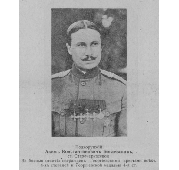13672. БОЛТВИН Михаил Захарович (Казак станицы Донской, УсКВ) — Уссурийский казачий полк, ст. урядник. Награждён Георгиевским крестом 1 ст. №13672, за то, что 8.09.1915, при атаке полком мест. Поставы, захватил два неприятельских пулемета. Георгиевский крест №466927 получил за боевые отличия. Из приказа командира полка: «За время взятия с боем деревни Нисковизны в пешем строю 1 (сотня Гленовского округа), 2, 4, 6 сотен и конной атаки 3-й сотни не могу не отметить беззаветную удаль и храбрость всех чинов полка, все до единого без колебания и робости исполнили возложенную задачу, а дружный натиск смутил врага, победа далась над превышающим числом врагов, у которого были пулемёты, и деревня была приспособлена к обороне. Достойные сыны далёкой Уссури, вами будут гордиться ваши братья, сыны и внуки». Имеет Георгиевские кресты [IV-466927] *