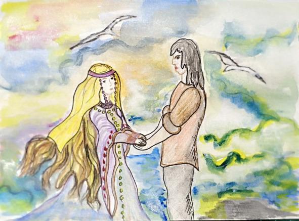 Заиграла и запела Заряна. И от песни той помолодела старушка, спину свою сутулую расправила и превратилась в красивую женщину в летах, но ещё молодую. Удивилась от такой перемены Заряна. А женщина ей и говорит: