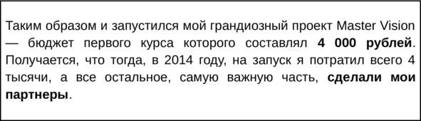Общий бюджет тренинга составил 1 600 000 рублей, из которых партнерам я выплатил около 40%. Эти люди мне поверили, они знали, что у меня все получится, видели мои горящие глаза, потому и помогли мне собрать аудиторию на вебинар, за что и получили достойное вознаграждение.