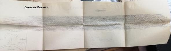 Эльдар взял осколок в руки, внимательно рассмотрел его и, как бы вспомнив что-то, заметил: «как же, она, железка эта, была больше. Вот отсюда (он указал на излом в поперечном бруске) шла еще полоска, лежавшая так же, как эта (поперечный брусок). Белое золото (так чеченцы называют платину) было и на них. Один подержал ее в руках, другой третий — и вот только и осталось».