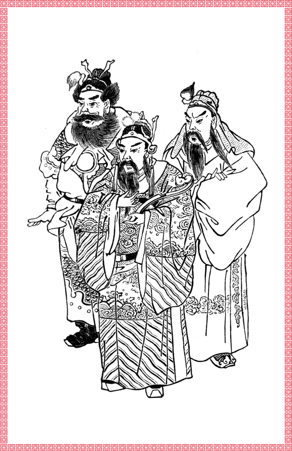 Создавая художественное полотно, Ло Гуаньчжун выдвигает на первое место любимых им героев, тех самых, которые уже были любимыми в народных сказаниях: это Лю Бэй, дальний потомок императорского дома, до того обедневший, что ему с матерью приходится жить скудным заработком от плетения сандалий и циновок, и его побратимы – бесстрашные богатыри Гуань Юй и Чжан Фэй, а также мудрый советник Чжугэ Лян. Все они герои исторические. Их жизнеописания есть и в «Истории Трех царств» Чэнь Шоу, но в создании образов этих геров Ло Гуаньчжун больше опирался на народную традицию эпического сказа и драмы. Именно оттуда заимствован эпизод братания Лю Вэя с Гуань Юем и Чжан Фэем. Мотив этот характерен для эпоса разных народов, братаются богатыри русских былин Илья Муромец и Добрыня Никитич, Илья и Алеша Попович, герои немецкого, французского эпоса и эпоса тюркских народов. Братанию, однако, обычно предшествует поединок между будущими назваными братьями. Ничего этого нет в «Троецарствии», герои случайно встречаются и решают совершить жертвоприношение и обряд братания. Но если мы обратимся к китайским народным легендам, то увидим, что в фольклорных вариантах описанию братания предшествует рассказ о том, как главные богатыри Чжан Фэй и Гуань Юй меряются силами. Мясник Чжан Фэй, рассказывает предание, в полдень прекратил свою торговлю, опустил в колодец кусок мяса, поднял тяжеленный камень весом в пятьсот цзиней (или 250 кг) и прикрыл колодец, сказав, что кто подымет камень, тому и достанется мясо. В это время к колодцу подошел Гуань Юй, легко, словно шарик от самострела, поднял камень, взял мясо и пошел прочь. Чжан Фэй догнал его и бросился на него с кулаками. Началась драка (бытовой вариант поединка), силы оказались равными (что тоже обычно для эпоса). Их разнимает Лю Бэй, продававший плетеные сандалии, они знакомятся и становятся побратимами. По другому варианту, они состязаются в лазанье на дерево, но в книжной эпопее не осталось и следов этого типично фольклорного мотива. Любопытно и другое: в устных легендах зачинщиком всюду выступает Чжан Фэй – типичный эпический герой-забияка, отвага и несдержанность которого могут погубить то дело, за которое борются герои. В народной книге, созданной до «Троецарствия», описание встречи будущих побратимов начинается именно с Чжан Фэя, действие как бы ориентировано на него, а в книжной эпопее, где, в соответствии с конфуцианскими взглядами автора, на первое место выступает законный потомок ханьских императоров Лю Бэй, действие начинается с него, именно он встречает Чжан Фэя и Гуань Юя, а не они его. Это, казалось бы, мелкое изменение, тем не менее, точно отражает иную позицию автора, хотя в тексте эпопеи Чжан Фэй и остается героем-забиякой: он то избивает ревизора, приехавшего проверять Лю Бэя (согласно «Истории» Чэнь Шоу, его избил сам Лю Бэй), то рвется в бой, не желая выполнять хитрые стратегические замыслы Чжугэ Ляна. В «Троецарствии» Чжан Фэй сохраняет многие черты народного героя – богатыря. Исторический Чжан Фэй был человеком образованным, славился не только как воин, но и как искусный каллиграф, в эпопее же он неграмотный мясник, умеющий лишь биться с врагом. Сохраняя многие черты эпического образа Чжан Фэя, Ло Гуаньчжун в то же время стремился несколько снизить эпичность образа, сделать его более правдоподобн