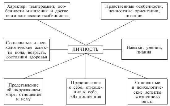 Можно представить следующую схему структуры личности преступника, каждая подструктура которой взаимодействует со всеми остальными, при этом личность преступника отличается от личности законопослушных людей не отсутствием или наличием какой-нибудь подструктуры, а содержанием каждой из них, в первую очередь нравственным.