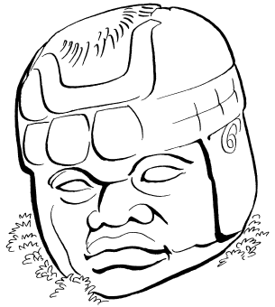 Рис. 5. Ольмекская культура, символом которой служат огромные каменные головы с толстыми губами и широкими ноздрями, обнаруженные в зарослях тропической растительности в штатах Веракрус и Табаско. Культура ольмеков датируется от 800 года до н. э. и более поздним временем