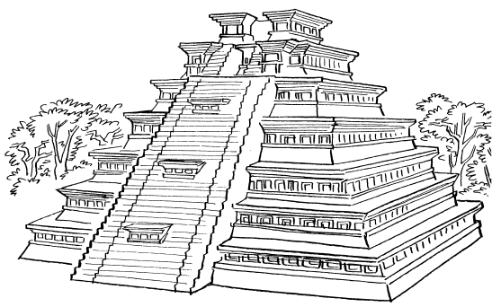 Рис. 9. Типичные особенности архитектуры тотонаков представлены в храме в Эль-Тахине (Тахине), Веракрус. В нишах располагались небольшие идолы; храм находился на вершине пирамиды. Тотонаки появились в 500 году до н. э. Это племя было в расцвете своей культуры, когда в 1519 году прибыл Кортес