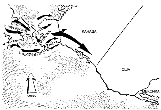Когда этот человек пришел в Америку, был конец последнего оледенения. Мы знаем о его присутствии, поскольку он оставил свои кости, перемешанные и окаменевшие вместе с костями вымерших животных. На протяжении веков, последовавших за этим переселением, люди двигались на юг по свободному ото льда аляскинскому коридору в сторону обширных земель Америки. За пять веков они проникли в самые отдаленные уголки континента, от скованного льдами севера до покрытого льдами юга, охватив в конечном счете все 135 градусов американской широты. Живя здесь по берегам замерзших или тропических вод, на высотах от уровня моря до нескольких тысяч метров, в лесах, на травянистых равнинах или пустынях; в одних местах – впроголодь, в других – в изобилии; в полярных областях – с ночью длиной до полугода, у экватора – продолжительностью двенадцать часов; среди живительных ветров или страдая от болезней, – древний человек в Америке, сильно меняясь в зависимости от природной и культурной среды, становился новым человеком – Homo Americanus.