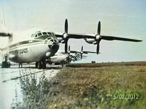 Стоянка самолётов Ан-12БП на аэродроме Боле. 1984 год.