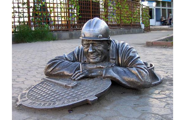 Одна из любимейших в городе скульптур, Степаныч, был установлен в 1998 году. На него можно буквально наткнуться — он буквально торчит из люка. Обычно памятники устанавливают великим, красивым людям, но этот памятник напоминает, что нужно помнить и о простых работягах, без которых нам никуда. По легенде, если обнять, погладить или дать ему закурить, то вся сантехника в доме будет всегда хорошо работать