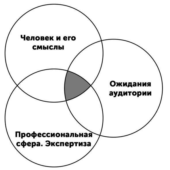 Как я вижу работу с личным брендом? Если в общих чертах, это пересечение трех сфер индивидуальности личности, над пониманием и раскрытием которых мы будем работать. Первая сфера — человек и его смыслы. Следующая сфера — ожидание целевой аудитории. Здесь мы будем говорить про понимание и изучение целевой аудитории. И последнее — профессиональная сфера, или зона вашей экспертности. Но самое интересное — это не просто круги, которые я нарисовала, а возможность заняться самоанализом. Что лично у вас на пересечении пространств Смыслы личности + Ожидания аудитории? Насколько обширна эта зона пересечения? Однако все это без «экспертизы», или профессионализма, бесполезно. В этом случае вы просто «недоэксперт».