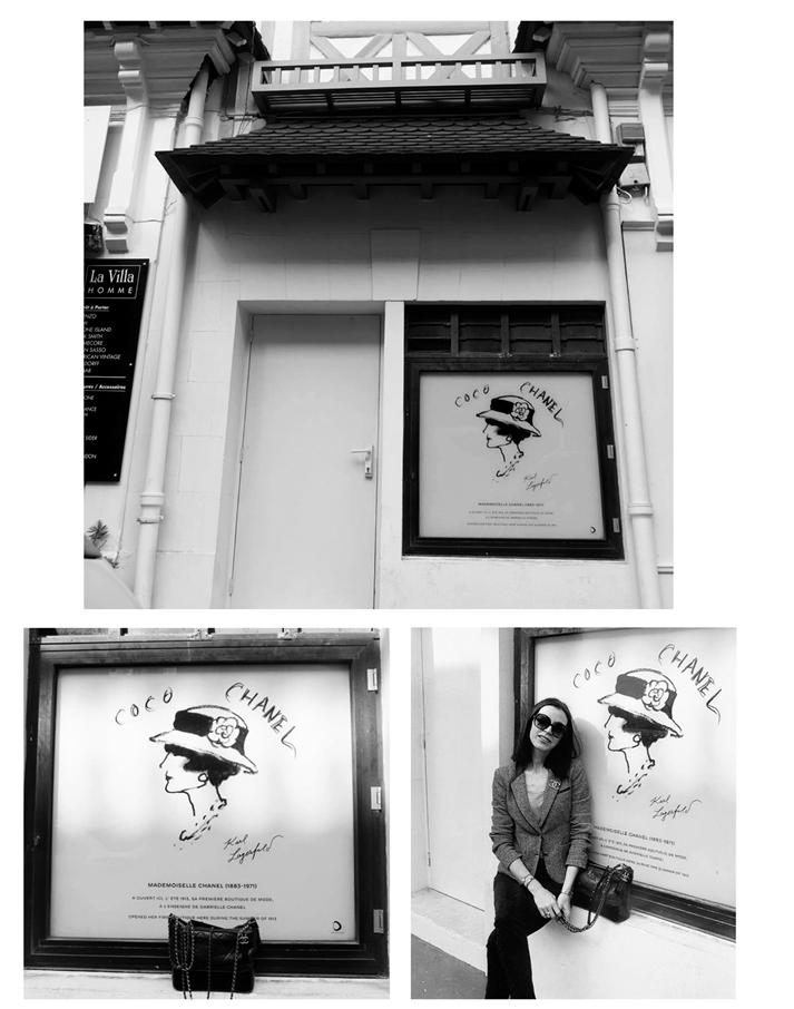 В 2017-м мне довелось побывать в Довиле, и, конечно, я не могла не пойти на улицу Гонто-Бирон, тем более что это самый центр города. И как же грустно и печально было увидеть первый бутик Chanel, который сегодня совсем неприметным теснится в ряду соседствующих с ним модных магазинчиков, с заколоченной наглухо дверью, и разве что нарисованная еще Карлом Лагерфельдом афиша-витрина с портретом Мадмуазель напоминает о том, где начиналась легенда.