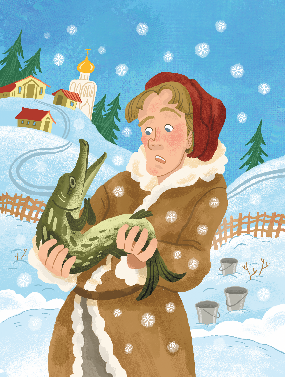 И увидел Емеля в проруби щуку. Изловчился и ухватил щуку в руку: