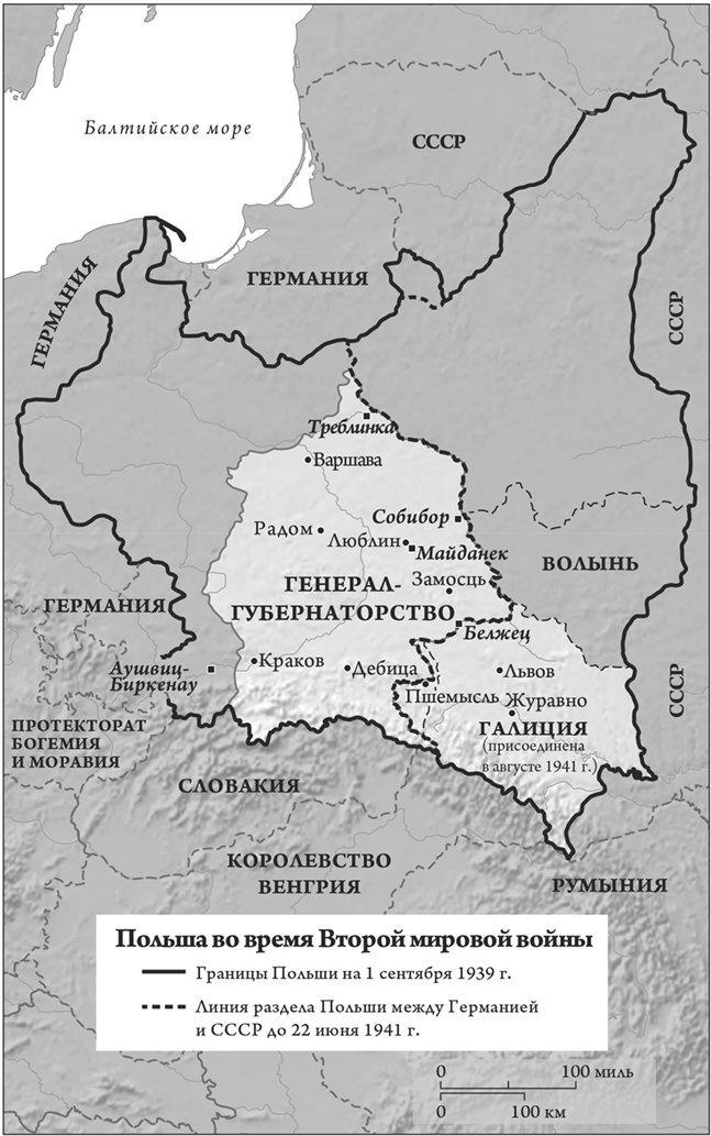 Янина с Генри спустились в бомбоубежище в подвале как гордые граждане Польши, а когда 22 сентября бомбардировки и обстрелы наконец прекратились, вышли оттуда подданными СССР. По секретному соглашению с немцами Советы присоединили польские провинции к востоку от реки Буг, включая Восточную Галицию. Оставшиеся территории Польши переходили к нацистской Германии, которая аннексировала польские западные и северные провинции в Третий рейх, а оставшуюся часть – примерно четверть довоенной Польши – превращала в Генерал-губернаторство, то есть, по сути, в колонию, управляемую германской администрацией в пользу метрополии.