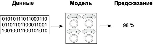 Обучение осуществляется поворотом регуляторов на разные углы. Если вы пытаетесь предсказать вероятность выигрыша мировой серии бейсбольной командой Red Sox, тогда эта модель сначала примет исходные данные (такие, как статистика побед/поражений или среднее число игр, сыгранных игроками) и сделает прогноз (например, вероятность 98 %). Затем модель проверит, действительно ли команда Red Sox выиграла мировую серию. Затем, зная результат, алгоритм обучения повернет регуляторы, чтобы в следующий раз, когда он получит те же или похожие исходные данные, можно было дать более точный прогноз.