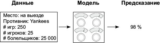 Для иллюстрации параметрического обучения с учителем продолжим аналогию со спортивными состязаниями и попыткой предсказать победу Red Sox в мировой серии. На первом шаге, как уже упоминалось, производится сбор статистики, ввод ее в машину и прогнозирование вероятности победы Red Sox.