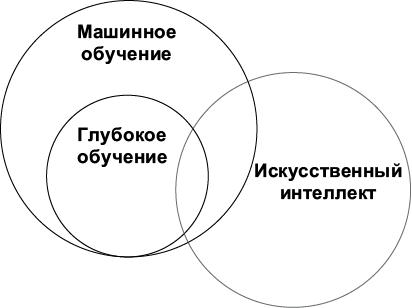 Обратите внимание, что глубокое обучение, как показано на этом рисунке, не полностью входит в область искусственного интеллекта (разумные машины, как в кино). Эта технология часто используется для решения широкого круга практических задач. Цель этой книги — познакомить с основами глубокого обучения, на которые опираются и передовые исследования, и практические применения, и подготовить вас к приложению своих сил в том или ином направлении.