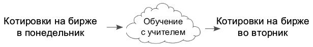 Машинное обучение с учителем — это метод преобразования одного набора данных в другой. Например, если представить, что имеется один набор данных «Котировки на бирже в понедельник», в котором записаны все котировки, имевшие место в каждый понедельник в течение последних 10 лет, и второй набор «Котировки на бирже во вторник» с котировками за тот же период, то алгоритм машинного обучения с учителем может попытаться использовать первый, чтобы предсказать второй.