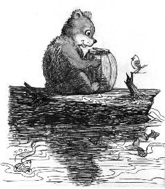 Как-то медвежонок Титу лежал на берегу речки. К нему подошла мама. В лапах у неё был бочонок мёда.