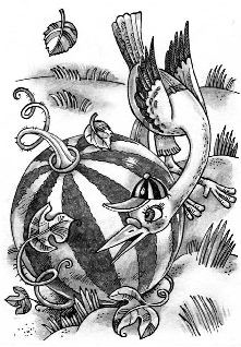 — Спасибо! Я сам справлюсь, — ответил Аист и вытер пот со лба. Сдвинув тяжёлый арбуз, он устал. В горле у него пересохло и так захотелось пить. «Что же делать? — подумал аист, — может, попробовать арбуз?» — и он, не удержавшись, стукнул по нему клювом.