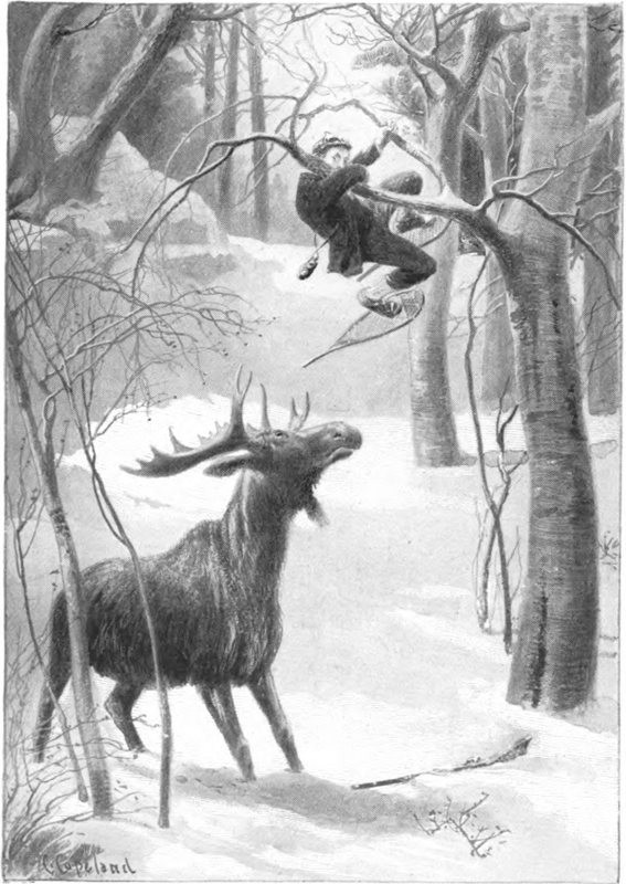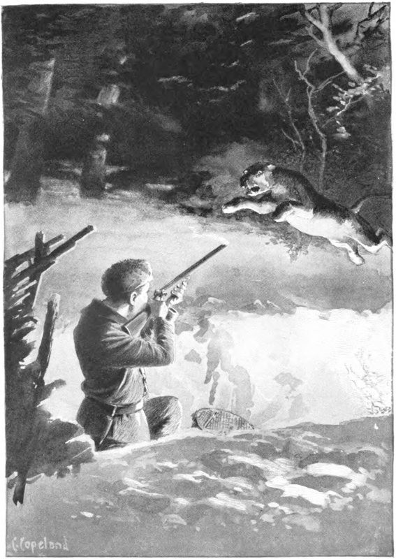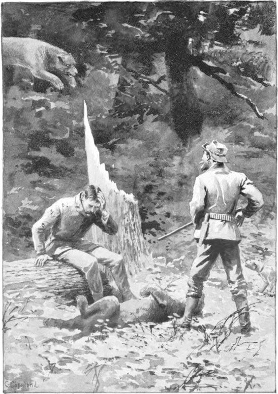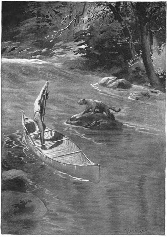 “Well,” assented Stranion, “there’s something in what you say. The other night I was thinking over the various adventures which have befallen me in my devotion to birch and paddle. It surprises me to find what a lot of scrapes I’ve got into with the panthers. The brutes seem to fairly haunt me. Of course fellows who every year go into the Squatook woods are bound to have adventures, more or less. You get cornered maybe by an old bull-moose, or have a close shave with some excited bear, or strike an unusually ugly lynx, or get spilled out of the canoe when you’re trying to run Toledi Falls; but in my case it is a panther every time. Whenever I go into the woods there is sure to be one of these creatures sneaking around. I declare it makes me quite uneasy to think of it, though I’ve always got the best of them so far. I’ll bet you a trout there are one or two spotting me now from those black thickets on the mountain; and one of these days, if I don’t look sharp, they’ll be getting even with me for all the members of their family that I have cut off in their sins.”