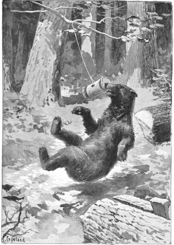 “‘This time the bear, after rubbing his head and his snout, and rooting some more in the leaves, sat back and seemed to consider. In a second or two he went up to the mall, and tried to take hold of it with one paw; of course it slipped right away, and you’d have thought it was alive to see the sharp way it dodged back and caught him again on the nose. It wasn’t much of a whack this time, but that nose was tender enough then! And the bear got desperate. He grabbed for the mall with both paws; and that way, of course, he got it. With one pull he snapped the codline, and the victory was his.