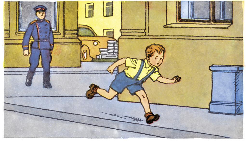 – Эх ты, трусишка! Увидел милиционера и испугался. Может быть, милиционер совсем в другое место идёт.