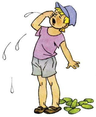 Мама посмотрела, а у него полные карманы огурцов, и за пазухой огурцы лежат, и в руках ещё два больших огурца.