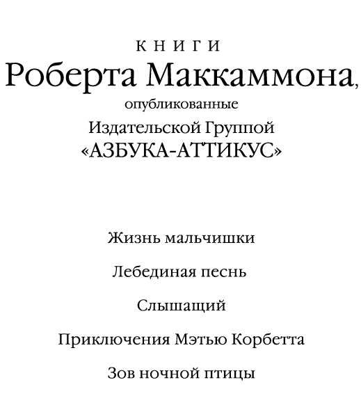 Зов ночной птицы : роман / Роберт Маккаммон ; пер. с англ. В. Дорогокупли. — СПб. : Азбука, Азбука-Аттикус, 2021. — (The Big Book).