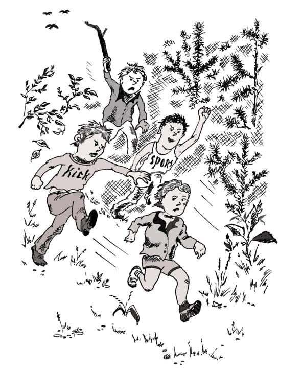 — Держи их! — Огурец, вихрастый увалень, раскинул длинные руки. — Сейчас свяжем одной верёвочкой и испытаем на храбрость.