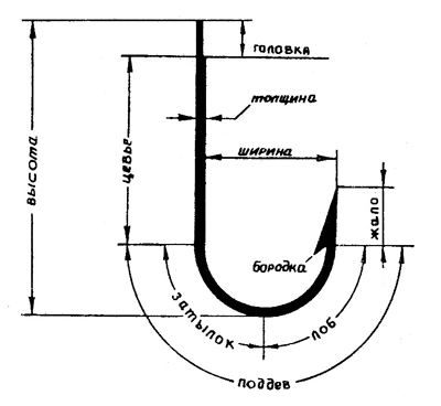 Внешне крючок – довольно простенькая деталь. Но и она имеет свои составные части. Основных три: головка, с помощью которой крючок прикрепляется к леске, цевьё и поддев. В свою очередь у поддева имеются: затылок, лоб, жало и бородка.