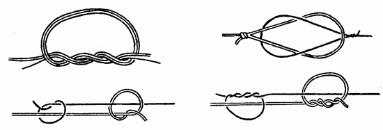 Первый – это узлы. На 20—25 процентов они снижают прочность лески. Вот почему образовавшийся во время лова на леске узел (перехлестнулась насадка или по другим причинам) должен быть немедленно развязан. Сделать это легче с помощью острой булавки или иголки. Стало быть, рыболов должен их иметь при себе. Докучают удильщику и узлы другого рода – крепежные. Неумело привязанный крючок или поводок рано или поздно или отвяжется или оторвется. Вот почему при сращивании лески, прикреплении поводка, крючка, карабина или приманки надо отдавать предпочтение тем узлам, которые не работают на разрыв.