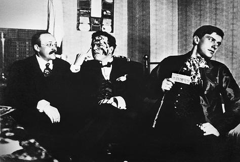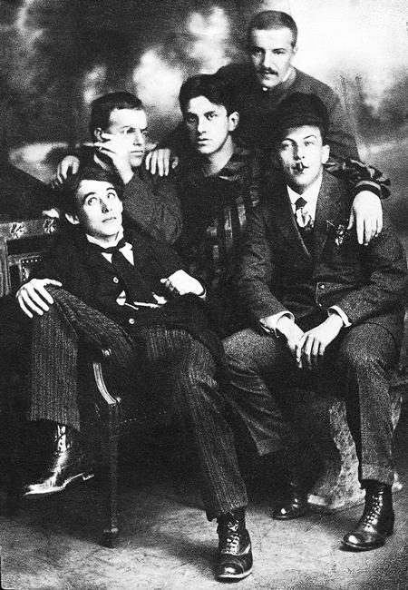 Маяковский с Кручёных, Давидом Бурлюком, Лившицем и Николаем Бурлюком. Москва, 1913
