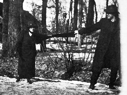 В. Ф. Шехтель и Маяковский. Москва, Лосиноостровская, 1913