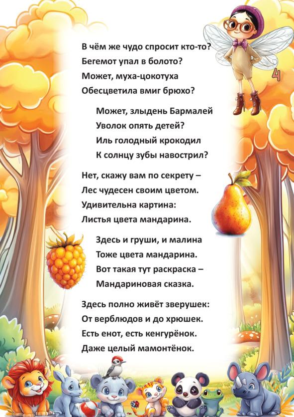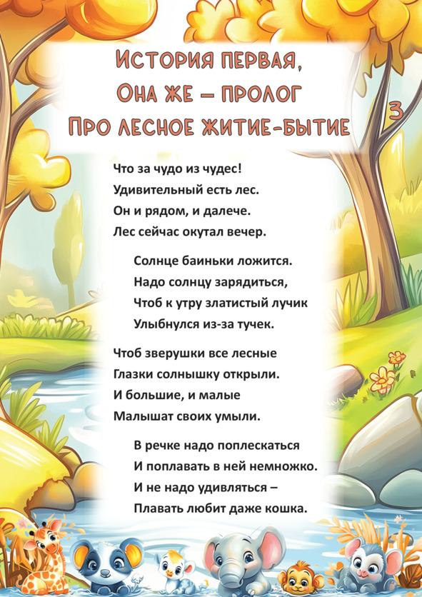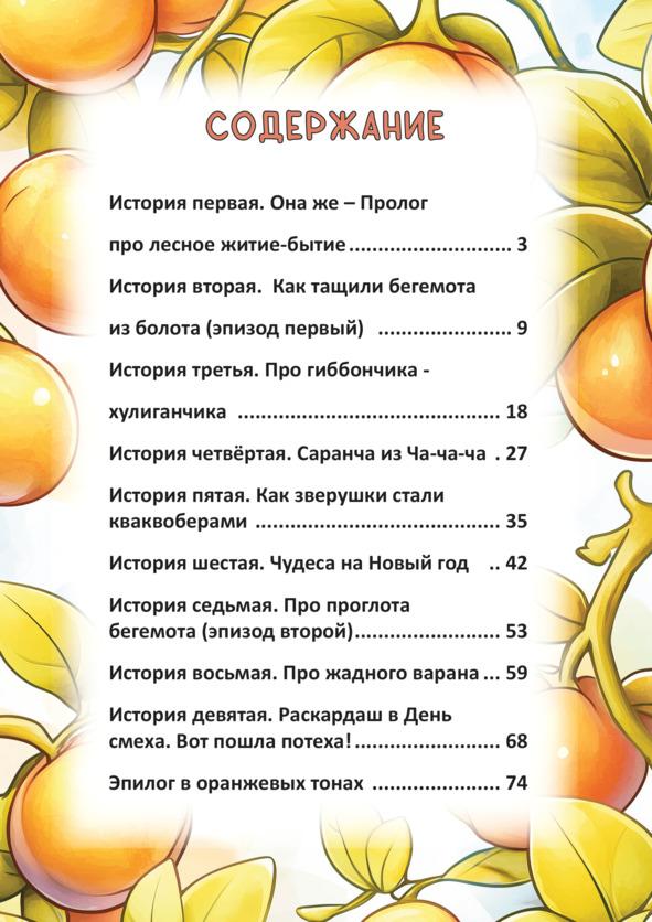 Это первый цикл «Сказок Оранжевого леса», состоящий из десяти отдельных историй. Это удивительные, веселые и познавательные истории про забавных, озорных и красочных зверей, живущих в сказочном Оранжевом лесу. Эти истории-сюжеты настолько ярки, динамичны, оригинальны и фееричны, что их уже сейчас, даже без экранизации, смело можно назвать мультяшными батальными и брутальными сценами.