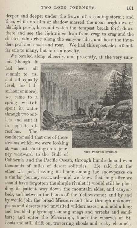 CHAPTER XII. A Mormon Emigrant Train—The Heart of the Rocky Mountains—Pure Saleratus—A Natural Ice-House—An Entire Inhabitant—In Sight of "Eternal Snow"—The South Pass—The Parting Streams—An Unreliable Letter Carrier—Meeting of Old Friends—A Spoiled Watermelon—Down the Mountain- -A Scene of Desolation—Lost in the Dark—Unnecessary Advice—U.S. Troops and Indians—Sublime Spectacle—Another Delusion Dispelled—Among the Angels