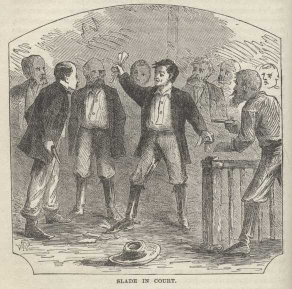 CHAPTER XI. Slade in Montana—"On a Spree"—In Court—Attack on a Judge—Arrest by the Vigilantes—Turn out of the Miners—Execution of Slade—Lamentations of His Wife—Was Slade a Coward?