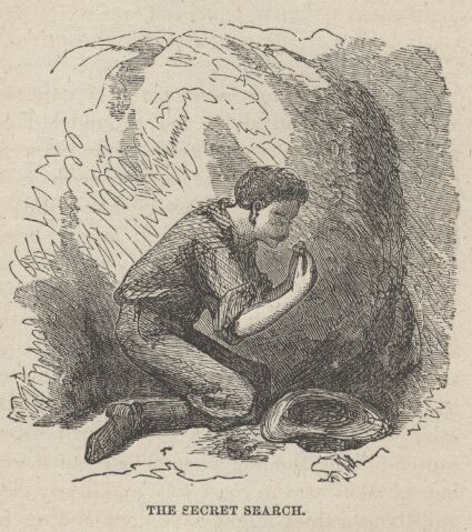 I confess, without shame, that I expected to find masses of silver lying all about the ground. I expected to see it glittering in the sun on the mountain summits. I said nothing about this, for some instinct told me that I might possibly have an exaggerated idea about it, and so if I betrayed my thought I might bring derision upon myself. Yet I was as perfectly satisfied in my own mind as I could be of anything, that I was going to gather up, in a day or two, or at furthest a week or two, silver enough to make me satisfactorily wealthy—and so my fancy was already busy with plans for spending this money. The first opportunity that offered, I sauntered carelessly away from the cabin, keeping an eye on the other boys, and stopping and contemplating the sky when they seemed to be observing me; but as soon as the coast was manifestly clear, I fled away as guiltily as a thief might have done and never halted till I was far beyond sight and call. Then I began my search with a feverish excitement that was brimful of expectation—almost of certainty. I crawled about the ground, seizing and examining bits of stone, blowing the dust from them or rubbing them on my clothes, and then peering at them with anxious hope. Presently I found a bright fragment and my heart bounded! I hid behind a boulder and polished it and scrutinized it with a nervous eagerness and a delight that was more pronounced than absolute certainty itself could have afforded. The more I examined the fragment the more I was convinced that I had found the door to fortune. I marked the spot and carried away my specimen. Up and down the rugged mountain side I searched, with always increasing interest and always augmenting gratitude that I had come to Humboldt and come in time. Of all the experiences of my life, this secret search among the hidden treasures of silver-land was the nearest to unmarred ecstasy. It was a delirious revel.