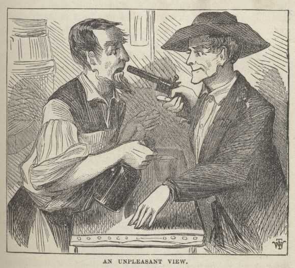 CHAPTER LIII. Jim Blaine and his Grandfather's Ram—Filkin's Mistake—Old Miss Wagner and her Glass Eye—Jacobs, the Coffin Dealer—Waiting for a Customer—His Bargain With Old Robbins—Robbins Sues for Damage and Collects—A New Use for Missionaries—The Effect—His Uncle Lem. and the Use Providence Made of Him—Sad Fate of Wheeler—Devotion of His Wife—A Model Monument—What About the Ram?