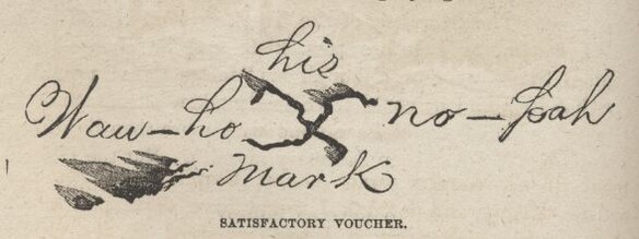 But the next time the Indian sawed wood for us I taught him to make a cross at the bottom of the voucher—it looked like a cross that had been drunk a year—and then I "witnessed" it and it went through all right. The United States never said a word. I was sorry I had not made the voucher for a thousand loads of wood instead of one.