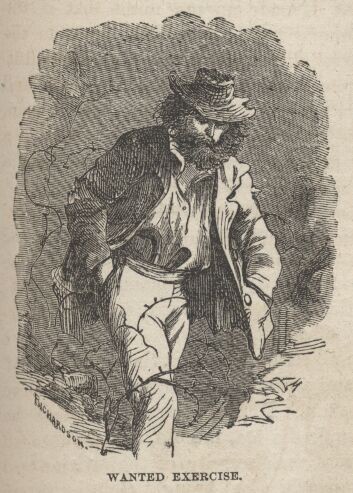 We could really have accomplished the journey in ten days if we had towed the horses behind the wagon, but we did not think of that until it was too late, and so went on shoving the horses and the wagon too when we might have saved half the labor. Parties who met us, occasionally, advised us to put the horses in the wagon, but Mr. Ballou, through whose iron-clad earnestness no sarcasm could pierce, said that that would not do, because the provisions were exposed and would suffer, the horses being "bituminous from long deprivation." The reader will excuse me from translating. What Mr. Ballou customarily meant, when he used a long word, was a secret between himself and his Maker. He was one of the best and kindest hearted men that ever graced a humble sphere of life. He was gentleness and simplicity itself—and unselfishness, too. Although he was more than twice as old as the eldest of us, he never gave himself any airs, privileges, or exemptions on that account. He did a young man's share of the work; and did his share of conversing and entertaining from the general stand-point of any age—not from the arrogant, overawing summit-height of sixty years. His one striking peculiarity was his Partingtonian fashion of loving and using big words for their own sakes, and independent of any bearing they might have upon the thought he was purposing to convey. He always let his ponderous syllables fall with an easy unconsciousness that left them wholly without offensiveness. In truth his air was so natural and so simple that one was always catching himself accepting his stately sentences as meaning something, when they really meant nothing in the world. If a word was long and grand and resonant, that was sufficient to win the old man's love, and he would drop that word into the most out-of-the-way place in a sentence or a subject, and be as pleased with it as if it were perfectly luminous with meaning.
