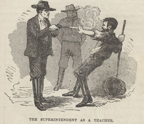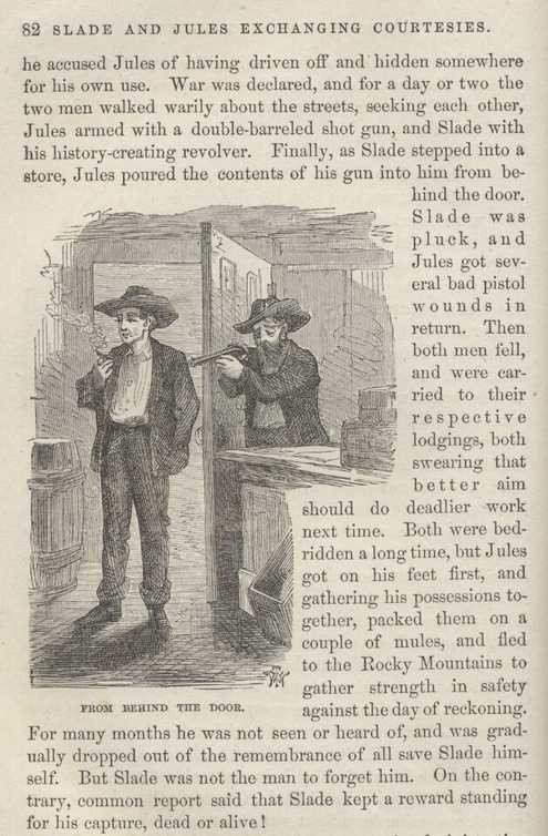 CHAPTER X. History of Slade—A Proposed Fist-fight—Encounter with Jules—Paradise of Outlaws—Slade as Superintendent—As Executioner—A Doomed Whisky Seller—A Prisoner—A Wife's Bravery—An Ancient Enemy Captured—Enjoying a Luxury—Hob-nobbing with Slade—Too Polite—A Happy Escape