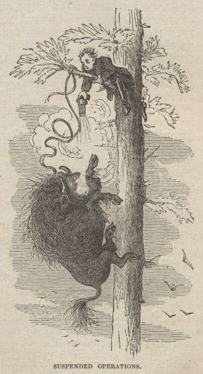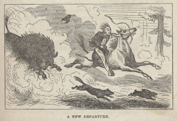 CHAPTER VII. Overland City—Crossing the Platte—Bemis's Buffalo Hunt—Assault by a Buffalo—Bemis's Horse Goes Crazy—An Impromptu Circus—A New Departure—Bemis Finds Refuge in a Tree—Escapes Finally by a Wonderful Method