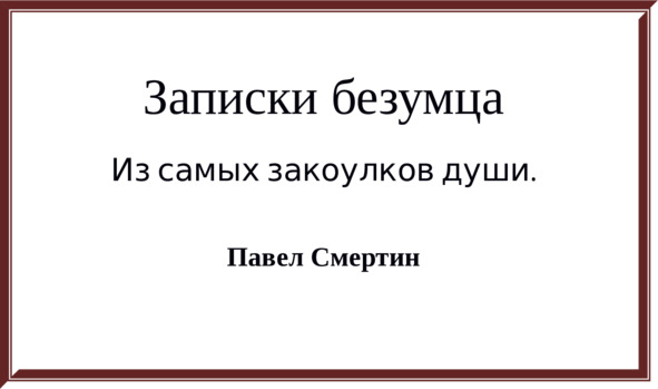 Прекрасная мысль, но кто знает, может в этот последний момент мне снова захочется жить. Я для себя давно решил, что если моя жизнь не изменится в лучшую сторону, то я застрелюсь в 27 лет. Идеальный возраст для самоубийства. Еще молод, но не юнец, но и еще не зрелый, без семьи, без детей. Никому ничего не должен. По крайней мере, не оставишь после себя безотцовщину. Все же, мне нужно написать как минимум еще одну книгу. Надо погрузиться в бездну своего безумия, а петля пусть ждет. В конце концов, жизнь лишь путешествие к смерти. Ну что же, начнем!